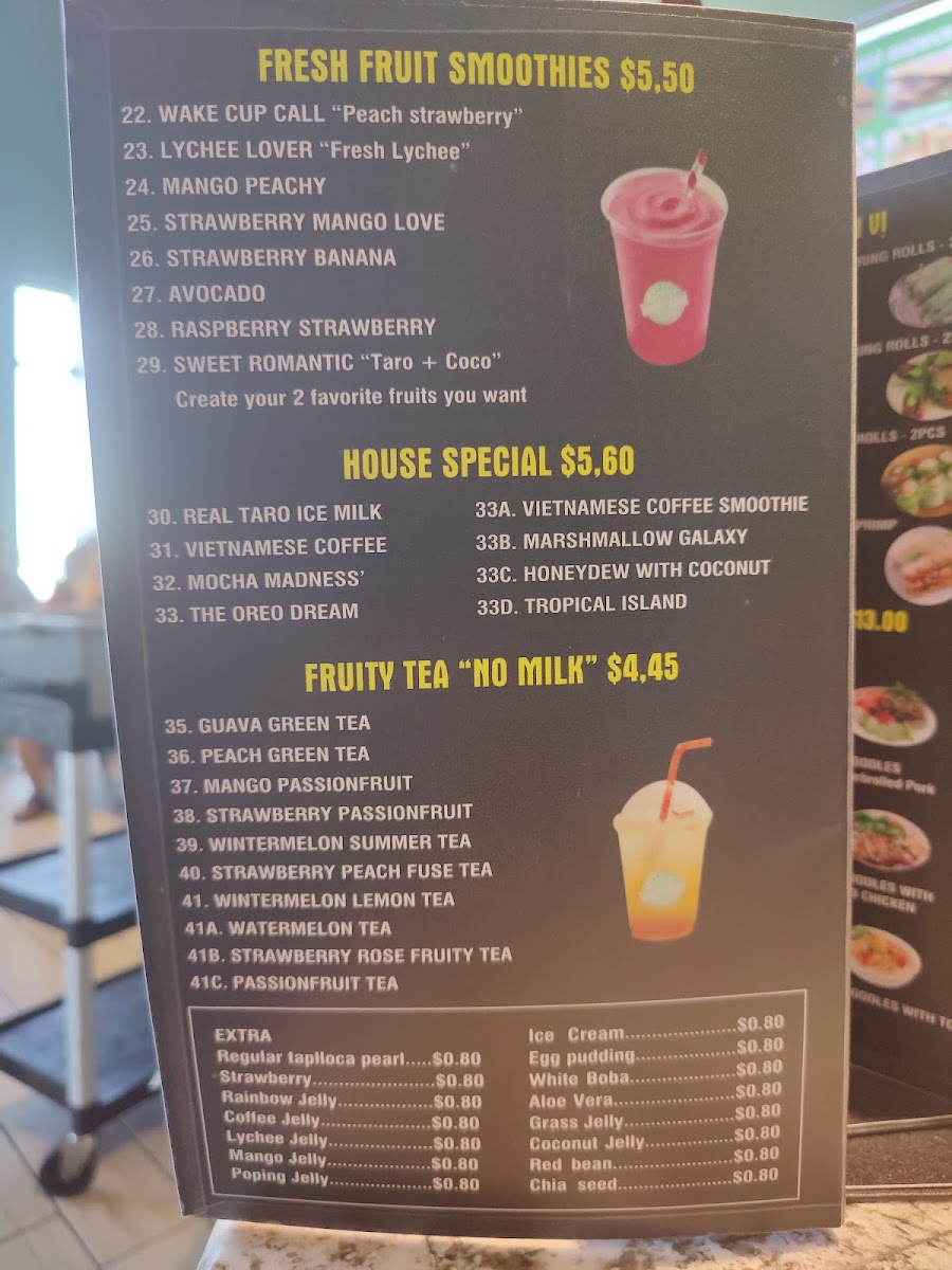 For beverages, customers adore the Thai tea and taro tea, adding a refreshing touch to any meal.
